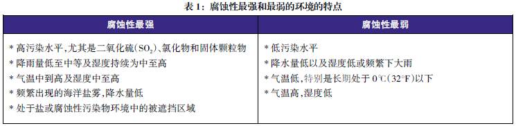 使用環(huán)境可分為鄉(xiāng)村、城市、工業(yè)或海洋環(huán)境。在每種環(huán)境中,都存在高、中、低水平的腐蝕風(fēng)險,這些風(fēng)險水平取決于降雨量、空氣溫度、污染和其它因素。在評估任何環(huán)境時,都要考慮所在區(qū)域的未來發(fā)展情況。